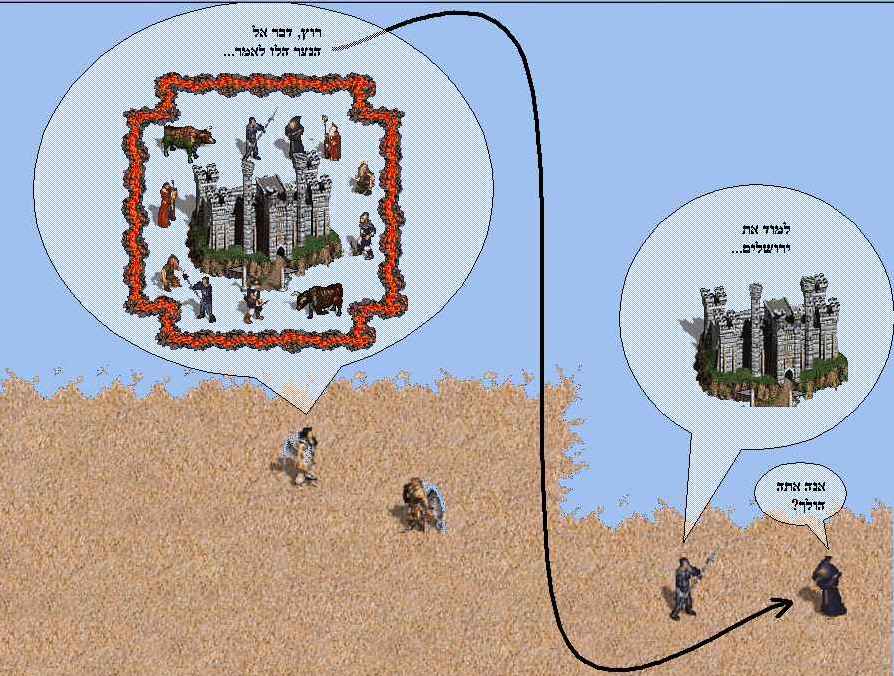 הוא שואל אותו: אנה אתה הולך?   והאיש עונה לו: למוד את ירושלים, לראות כמה רוחבה וכמה אורכה .